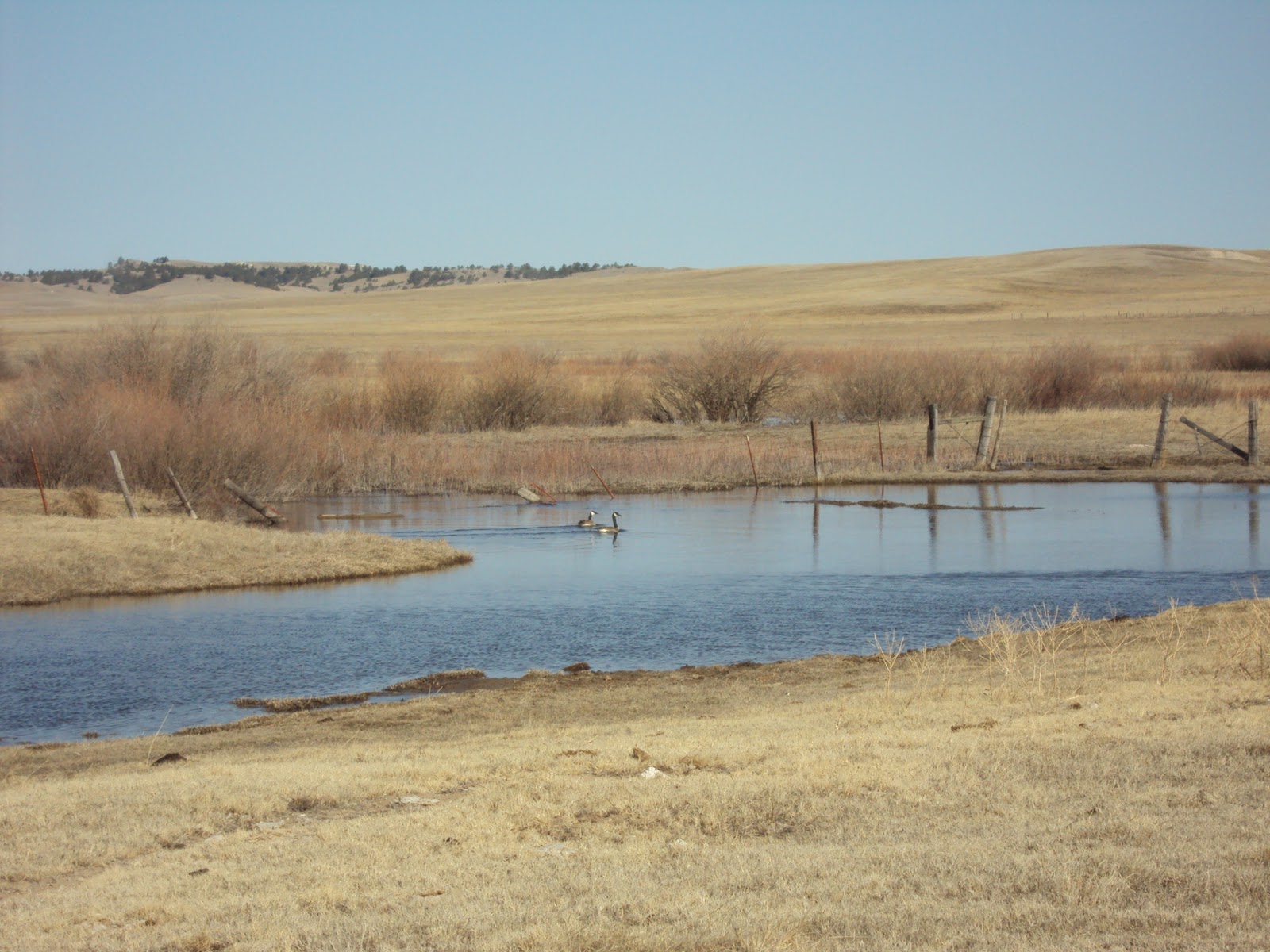 The pair of geese that laid over for several weeks at the ranch last year stopped again this week. Hopefully they will find the elevated nest that I built for them and decide to stay and raise little goslings here this summer. The river is still extremely high as the frost comes out of the ground and the ice in the river melts, we won't tell the geese that sometimes the river dries up in the summer. The eagle was released today (he runs on the ground great, but doesn't fly so good) we will see how he does for a few days on his own.